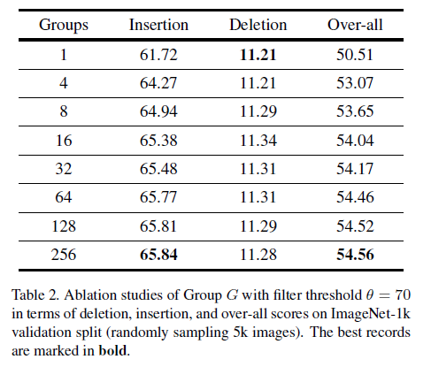 다음으로 numerical performance를 확인해보자면, Table 1은 insertion, deletion, over-all에 대한 performance를 보여주고 있으며, Deletion을 제외한 insertion, over-all에서 가장 좋은 성능을 보였다. Table 2는 $\theta$를 70으로 고정하고, group의 수를 바꿨을 때의 성능의 표를 보여주고 있다.