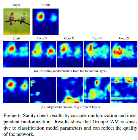 다음으로, 밑의 그림에서는 Group-CAM이 Sanity check를 통과했음을 보여주고 있다.