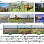 CycleGANUnpaired Image-to-Image Translation using Cycle-Consistent Adversarial NetworksZhu, Jun-Yan, et al. "Unpaired image-to-image translation using cycle-consistent adversarial networks." arXiv preprint (2017).위의 그림에서 보는 것과 같이, cycleGAN은 서로 다른 domain의 이미지를 translate하는 'Image-to-Image translation' GAN이다. GAN이라는 단어가 사용되었기 때문에 당연히, Discriminator와 Generator는 서로 'Adversarial learning'을 시행한다. Cycle..
